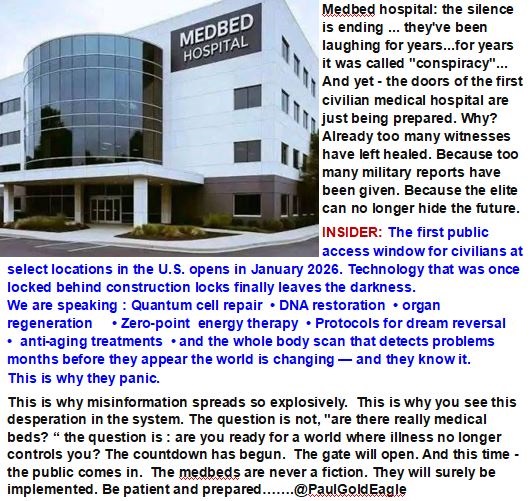 ✅ WHAT YOU NEED TO DO NOW *Stop using centralized banks *Keep real gold and silver *Find out more about Redemption Centres Get ready for communications blackouts. Get rid of media programming in your head. NESARA doesn’t need anyone’s permission. It’s real. It’s going on. And those who hold on to the old ways of doing things, like fiat money, debt, and taxes, will be in a lot of trouble. This is a reset for your spirit, your money, and your technology. Trump started the fire. The Patriots are in charge. Time is running out. There is nothing that can stop what is coming. ……@PaulGoldEagle